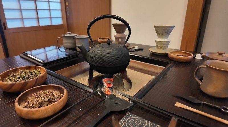 The freshly ground coffee and herbs are transferred into a ""Shigaraki-yaki"" pot—a traditional ceramic from Shiga Prefecture. The warm, rustic texture of the Shigaraki clay resonates with the practical and stoic spirit of the ninja. As you pour hot water, the deep richness of the coffee merges with the wild, earthy scent of the herbs, giving birth to a new ""wellness brew."" Watch the rising steam and wait patiently as the flavors infuse. -